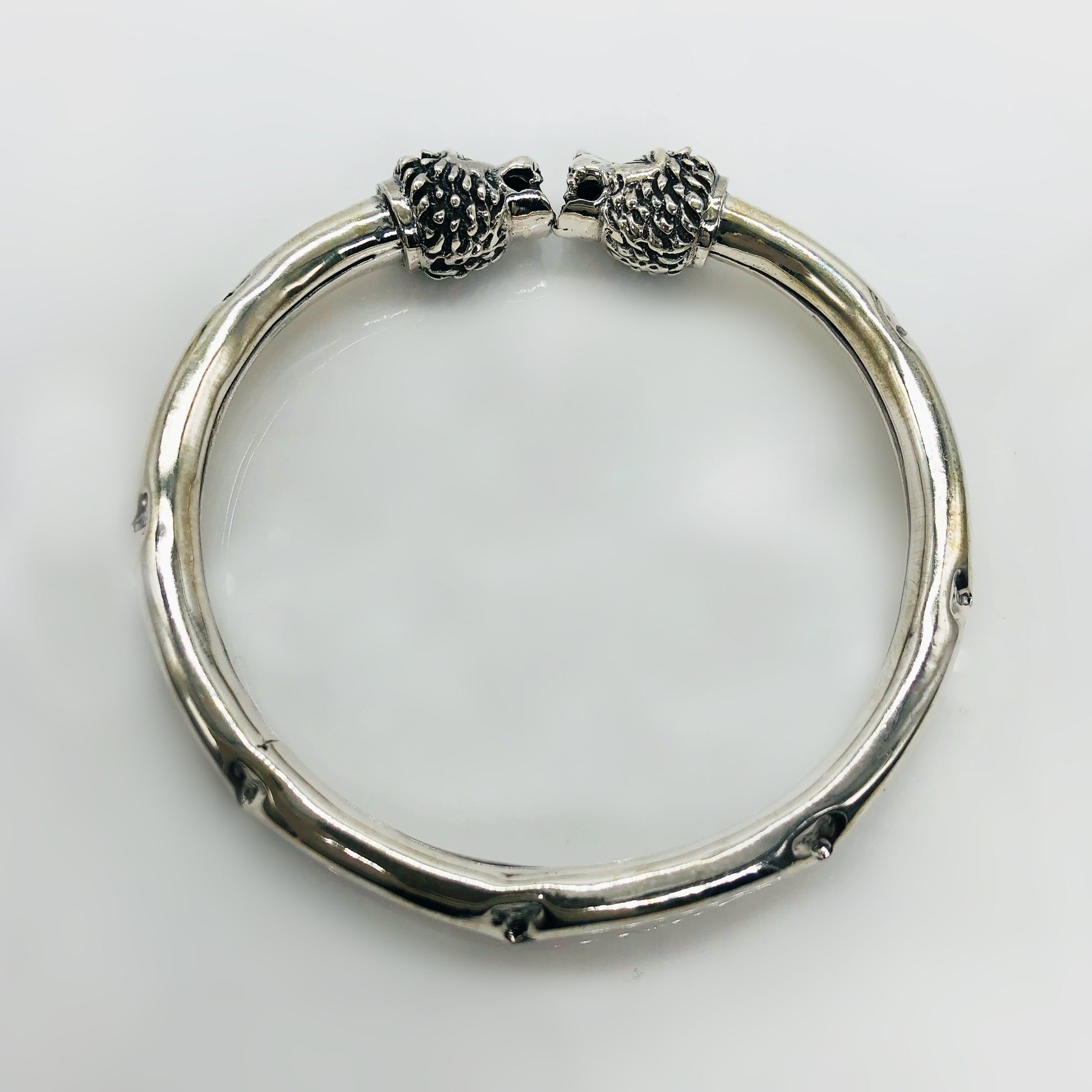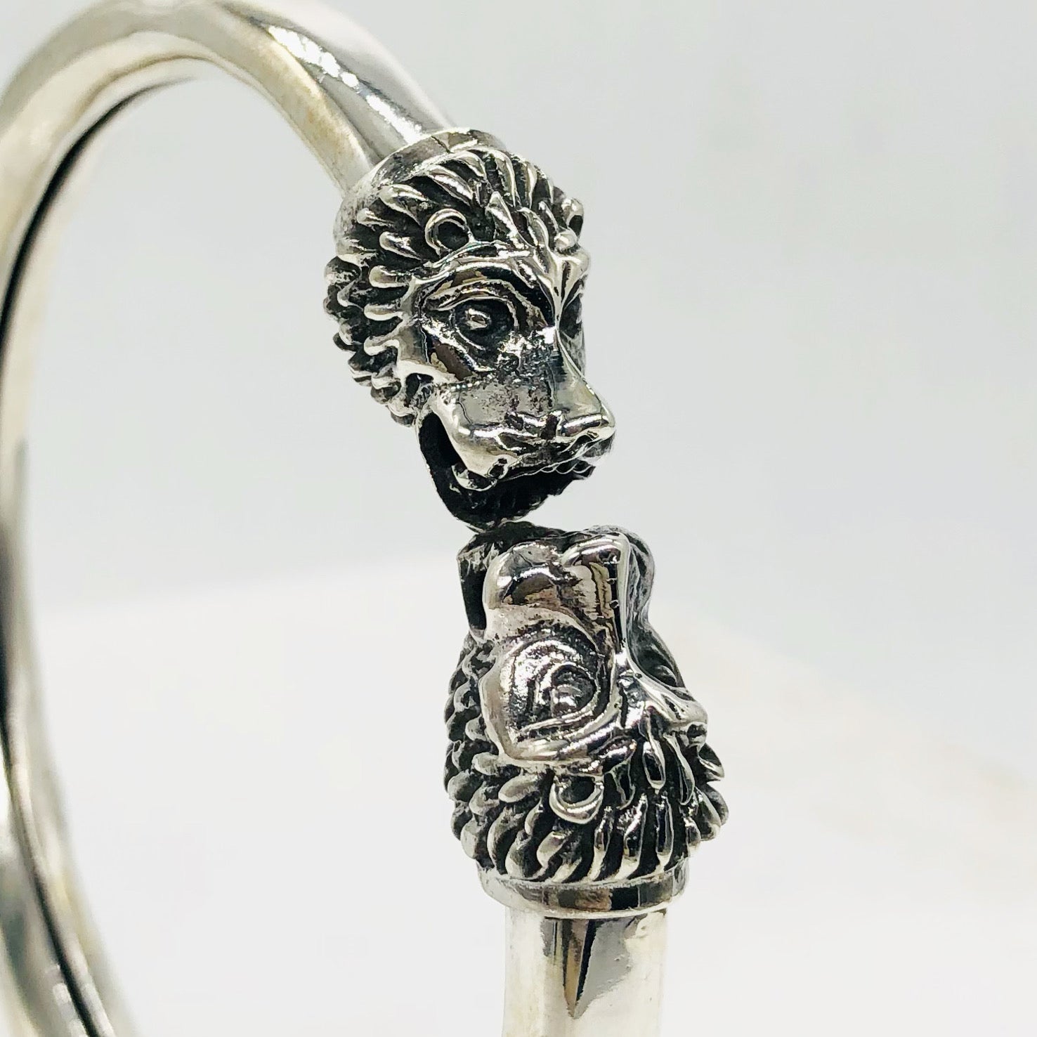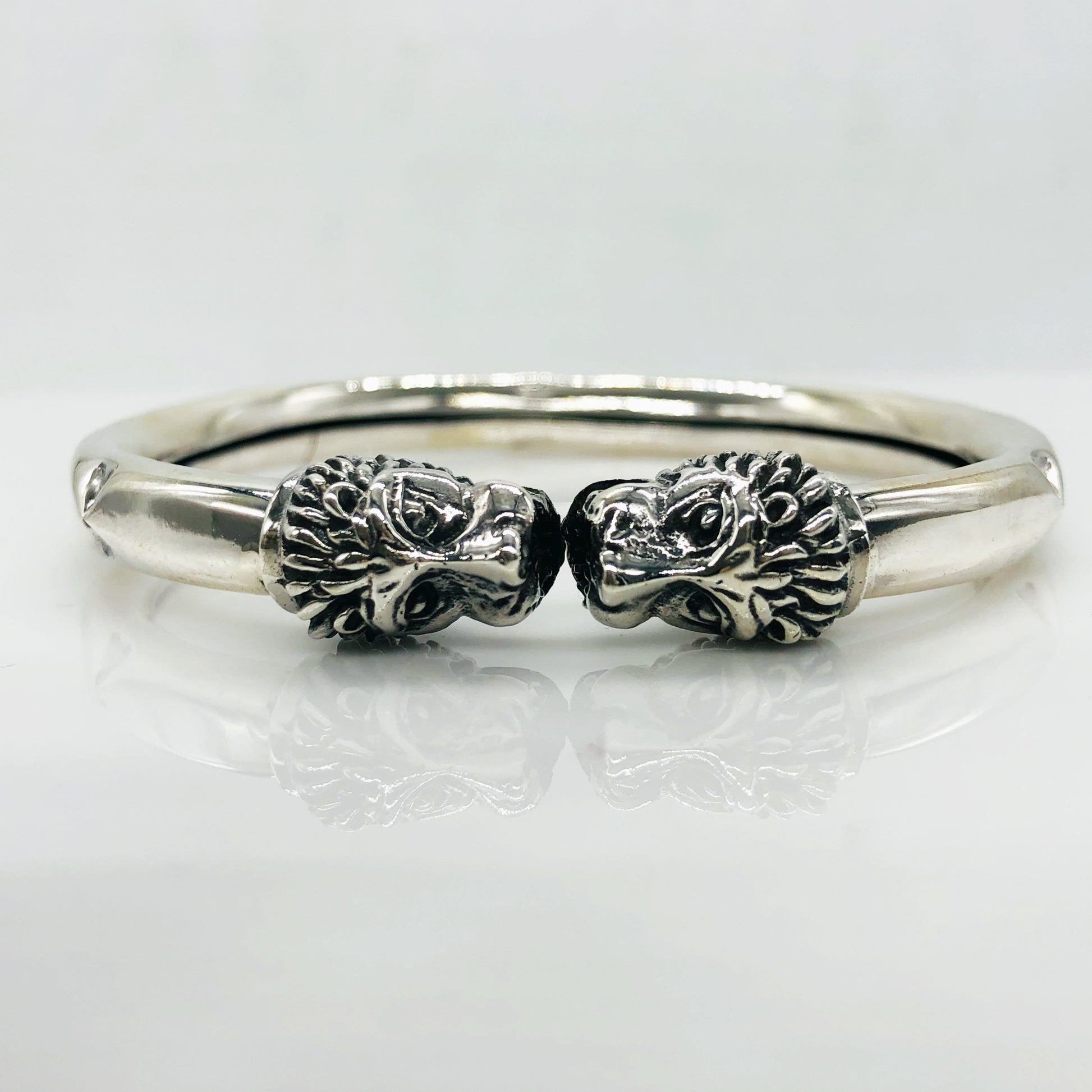 Make a bold style statement with this 92.5 sterling silver oxidised men’s kada. Featuring dual lion head motifs at the open ends, this kada is hollow and lightweight for comfortable wear while still offering a strong, masculine look. Perfect for daily wear or special occasions.