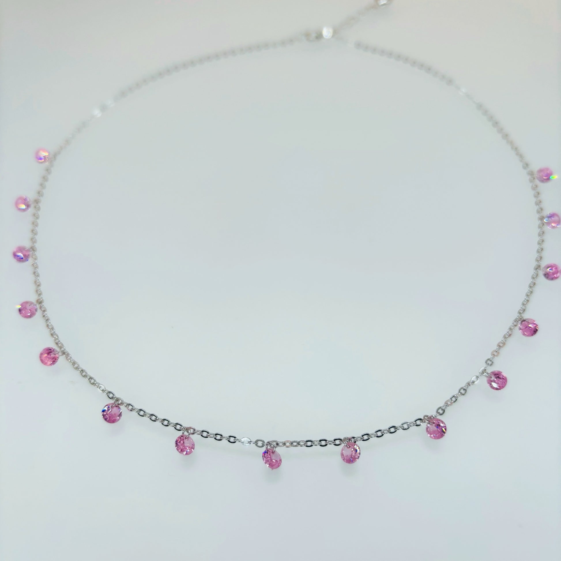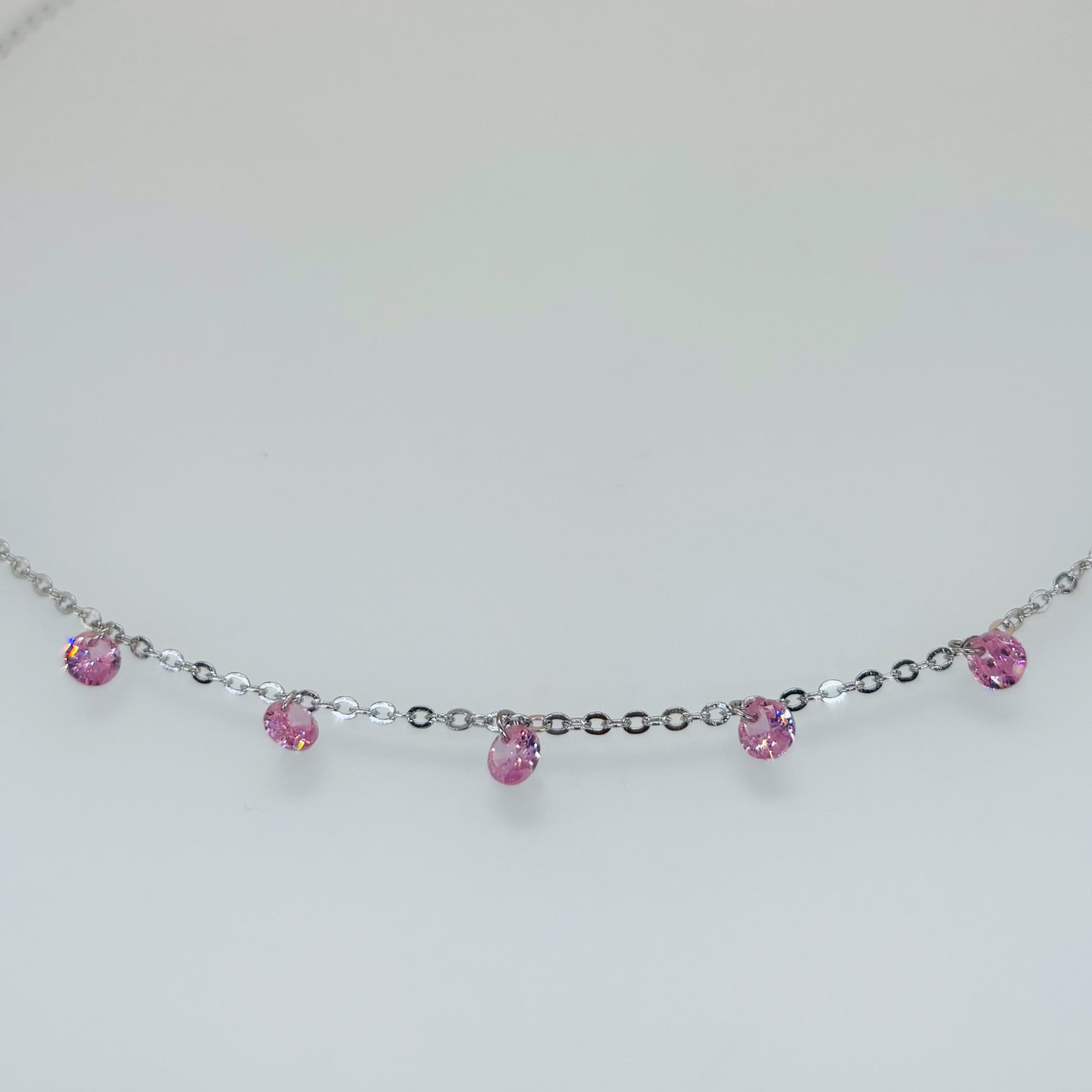 Bright, charming, and full of sparkle—this Pink CZ Dangling Charm Necklace is crafted with delicate precision in Italian 92.5 sterling silver. The necklace features multiple shimmering pink CZ stones that sway gracefully along the chain, adding a playful yet elegant touch to any outfit.