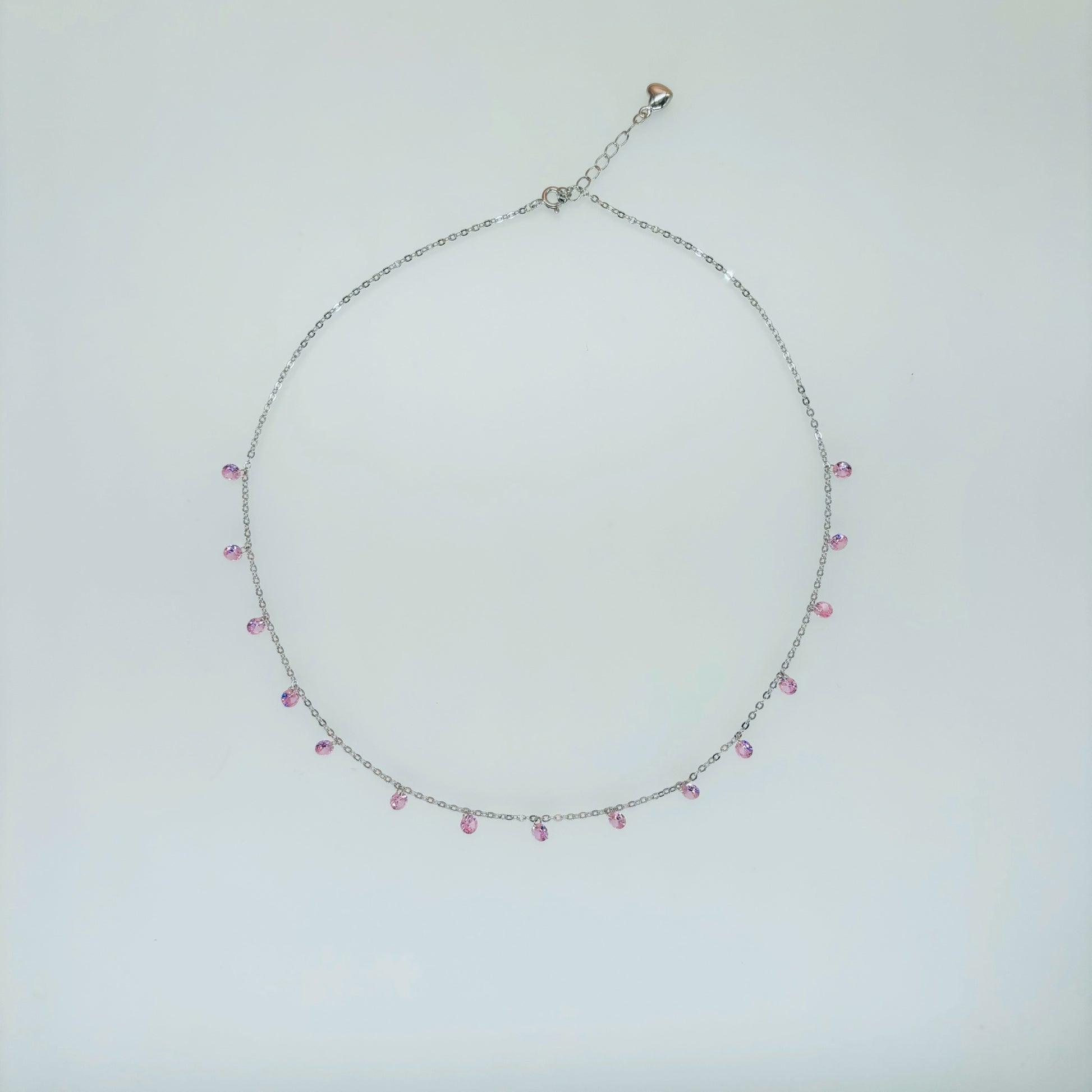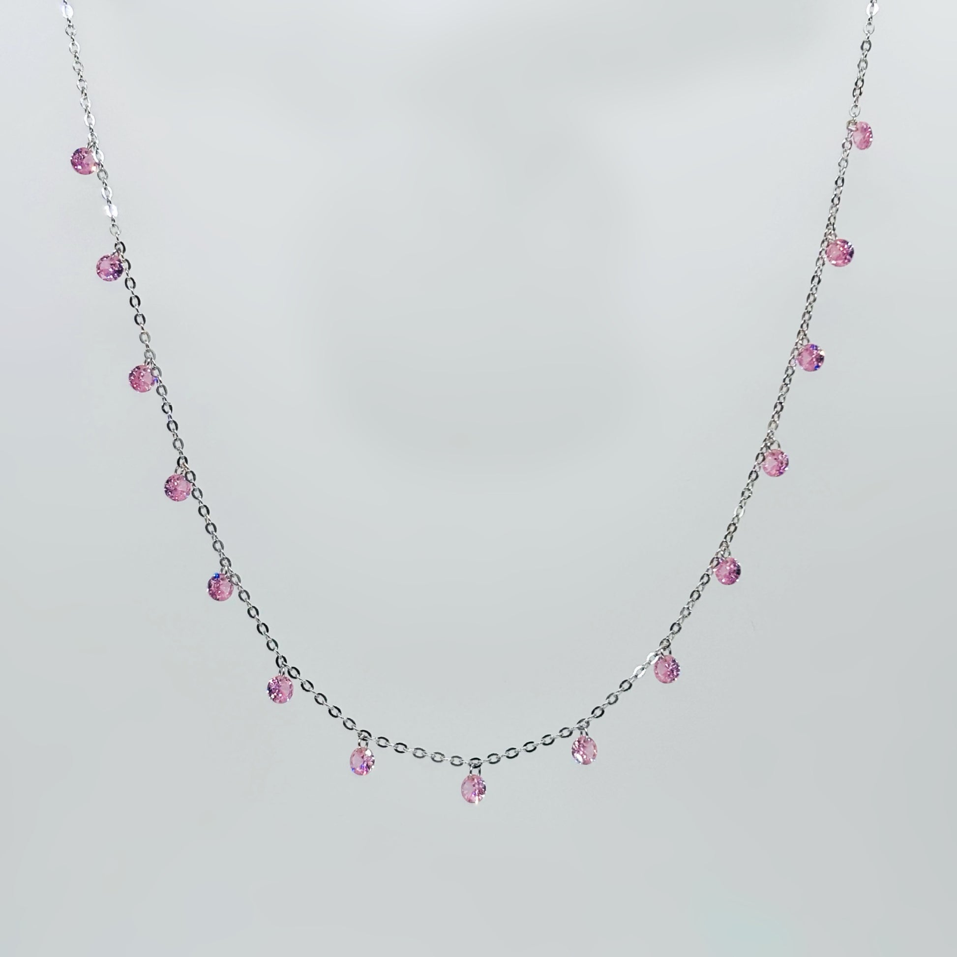 Pink CZ Dangling Charm Necklace in Italian 92.5 Silver