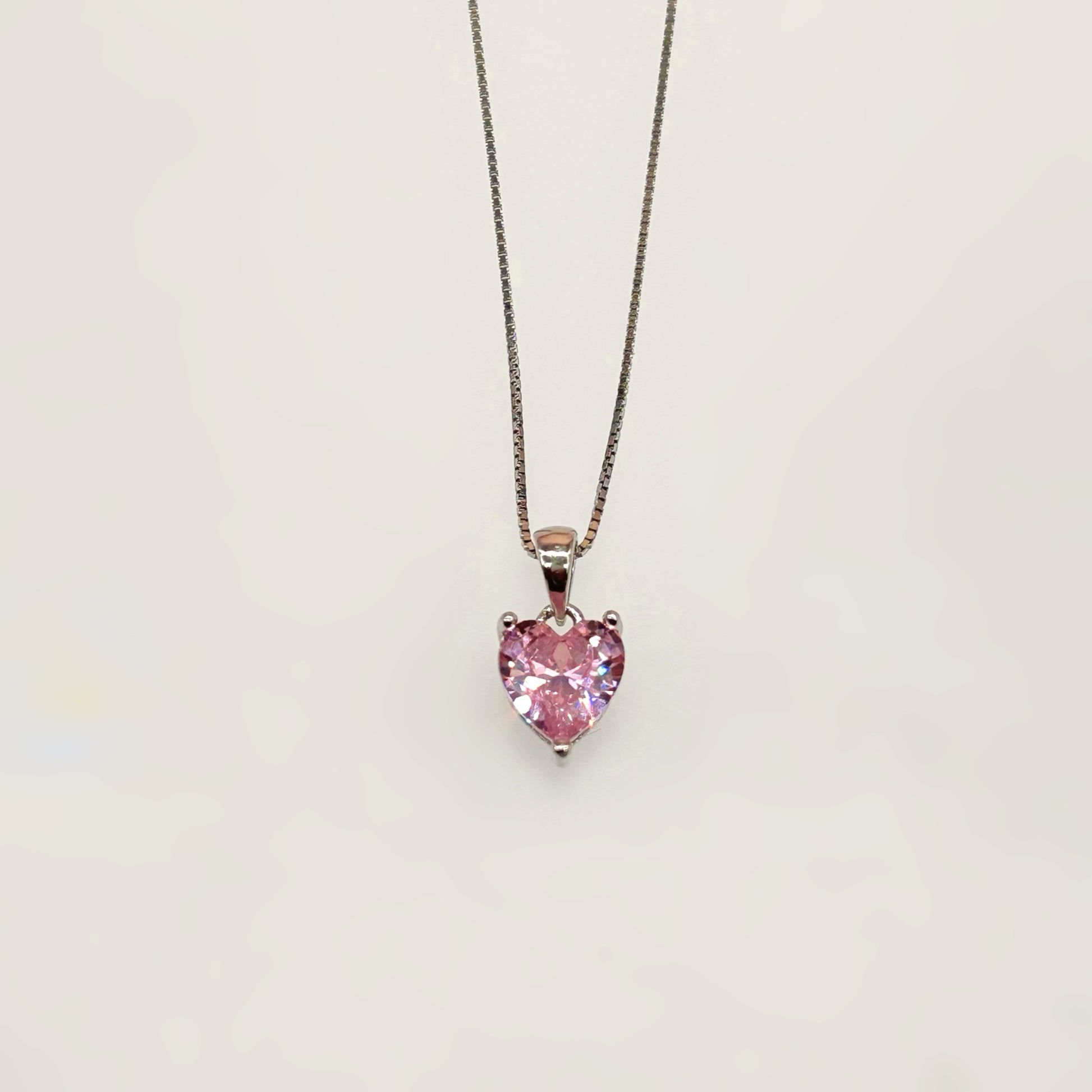 Pink Heart Solitaire Necklace in Italian 92.5 Silver
