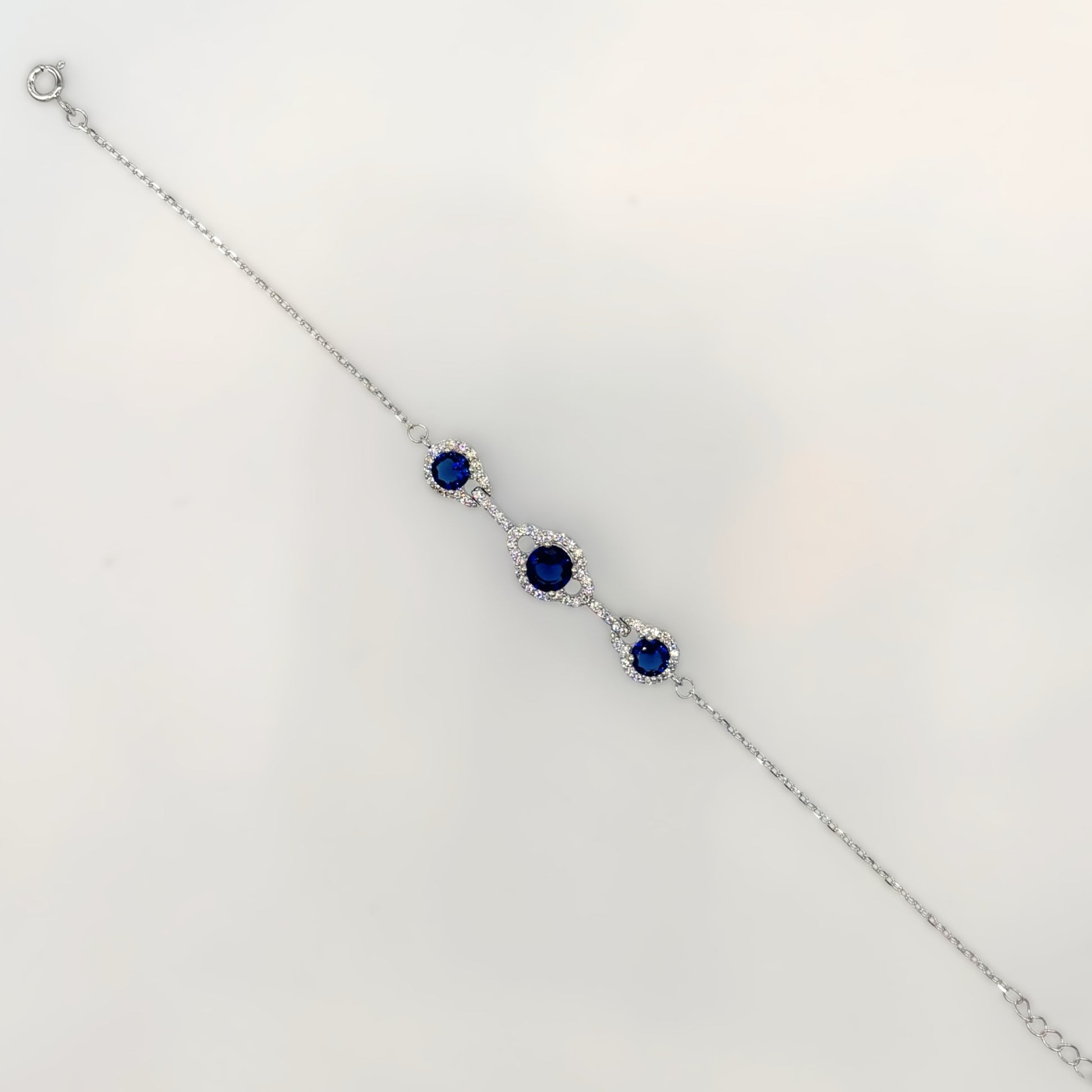 Discover timeless sophistication with the Royal Sapphire Halo Luxury Bracelet, designed to elevate your jewellery collection with its rich, deep sapphire-blue CZ stones. The triple-stone layout features a bold center halo, gracefully framed by two matching sapphire halos—each surrounded by sparkling micro CZ diamonds for breathtaking brilliance.