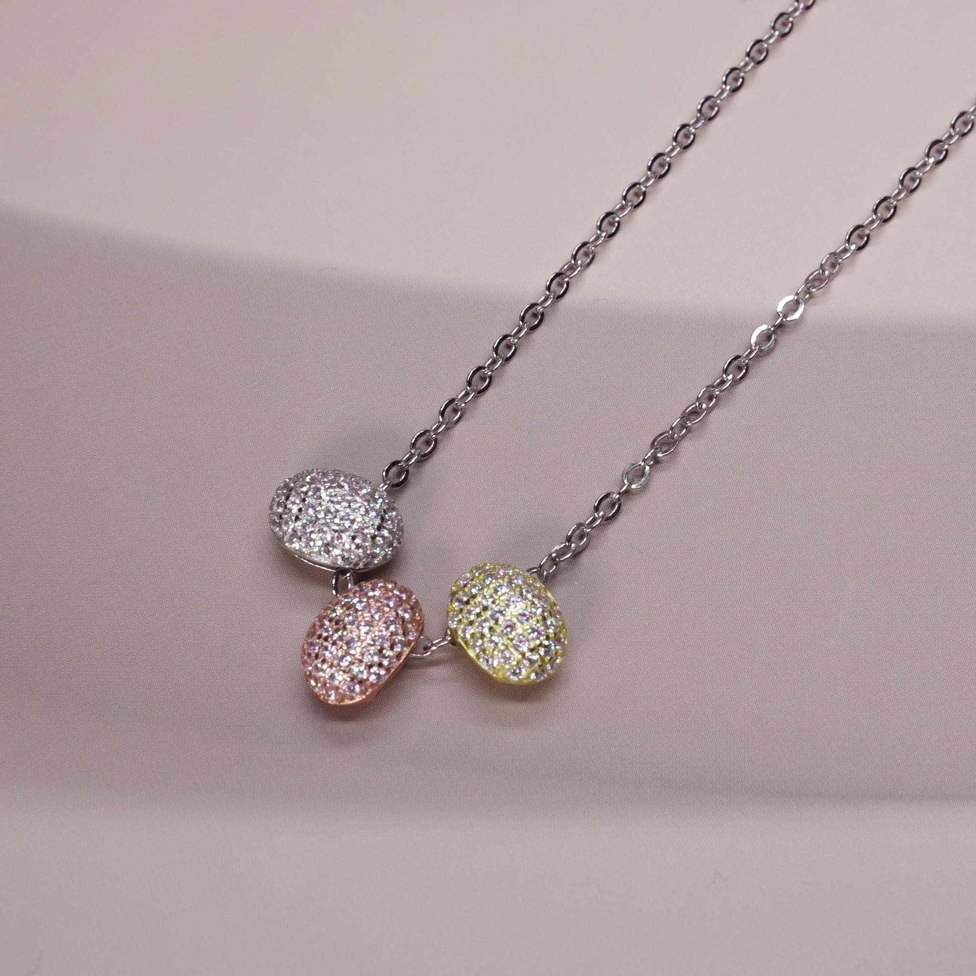 Elevate your elegance with this Italian Collection necklace, crafted from 92.5 sterling silver and designed with three stunning charm pendants in silver, rose gold, and golden tones. Each charm is beautifully encrusted with shimmering stones, adding a touch of sophistication and luxury to your look.